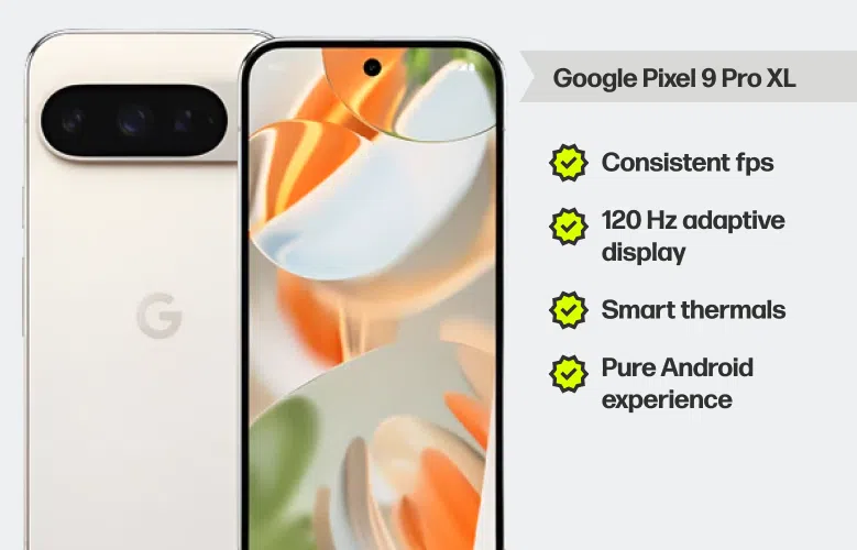 Google Pixel 9 Pro XL: Smooth, cool, and efficient, the Pixel 9 Pro XLpairs the Tensor G4 chip with adaptive refresh and smart power management for balanced, comfortable gaming.